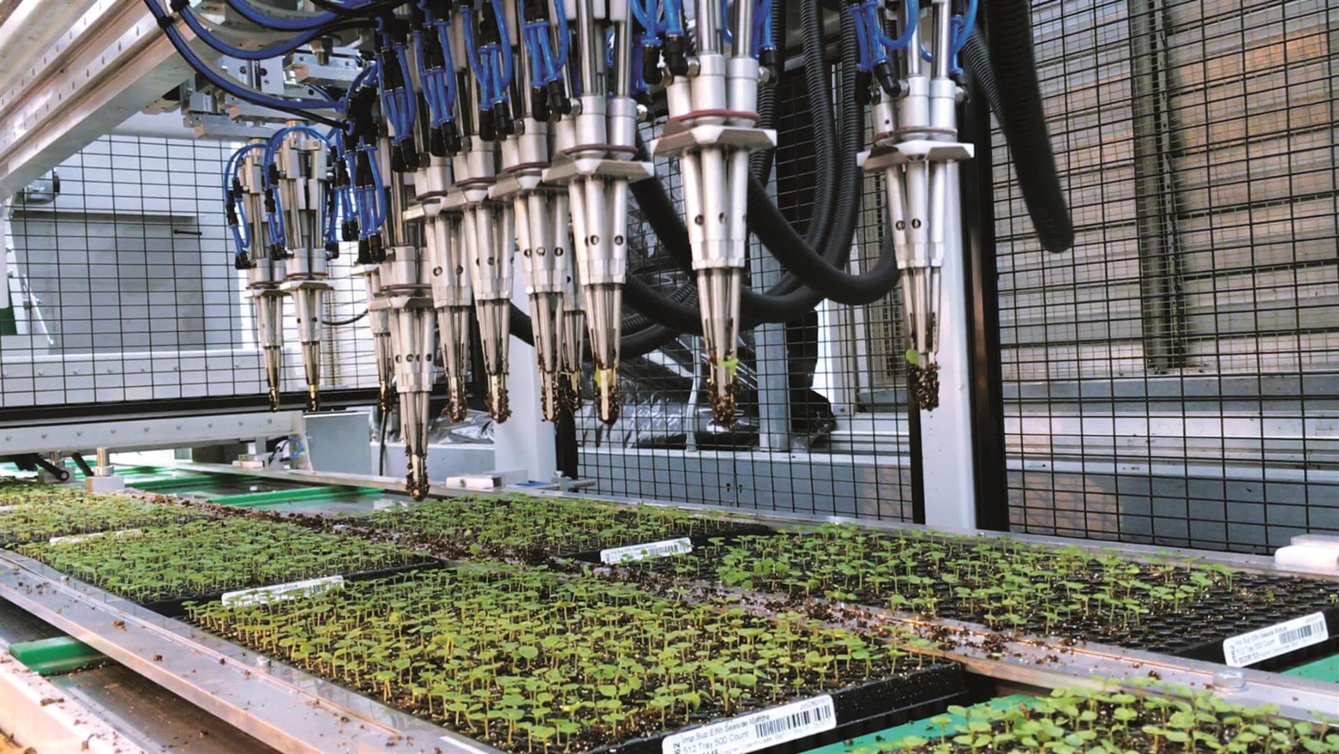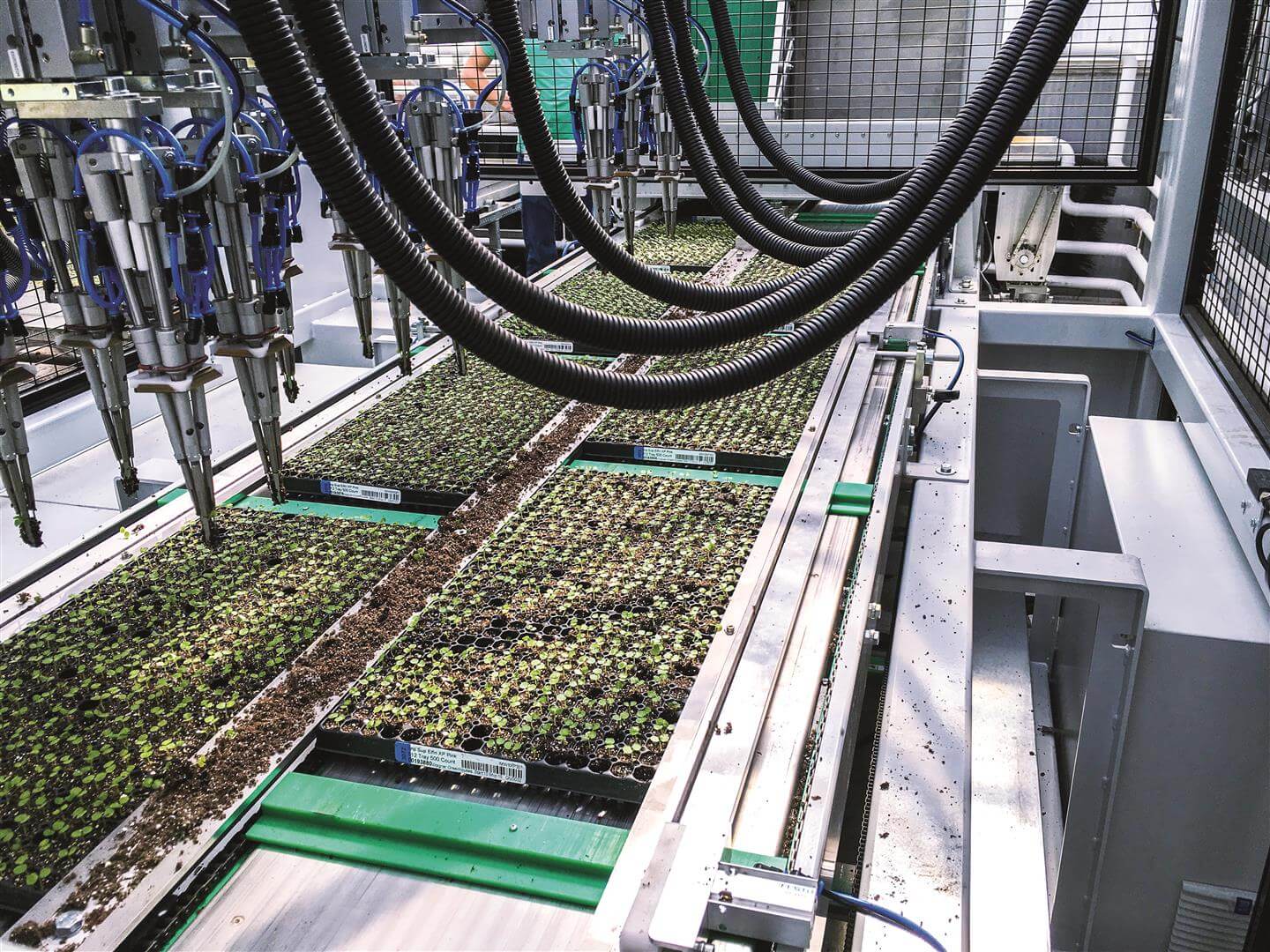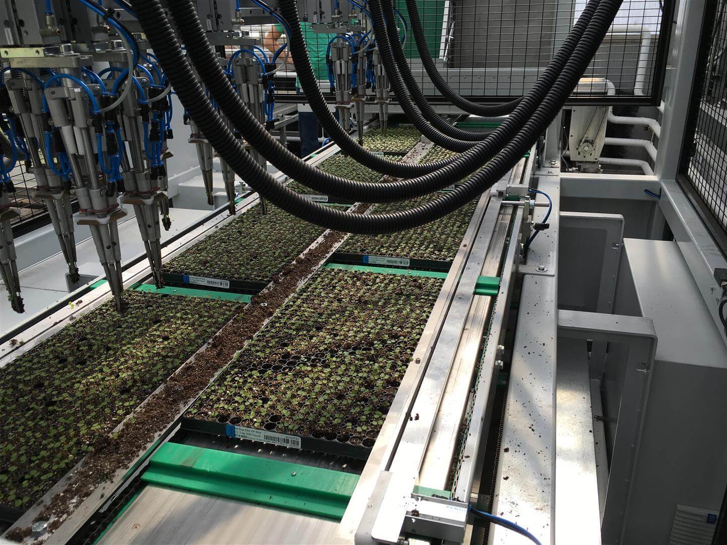 The Fix-O-Mat TIFS-IV is a high-speed replugging machine. It has two high-resolution cameras for tray inspection, providing the most precise grading technique. Each gripper has individually controlled movements which enable the system to achieve a capacity of up to 12,000 plants per hour.