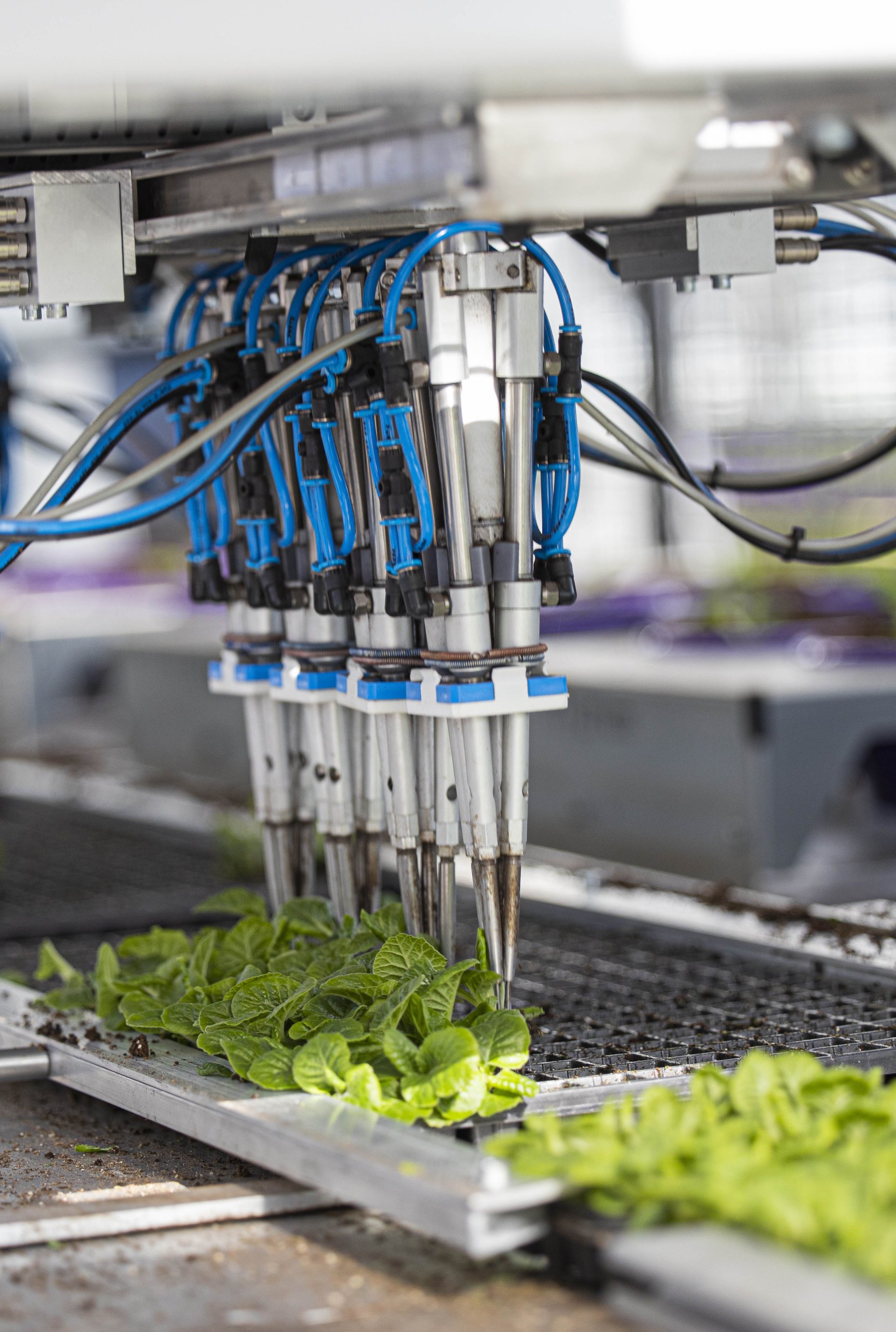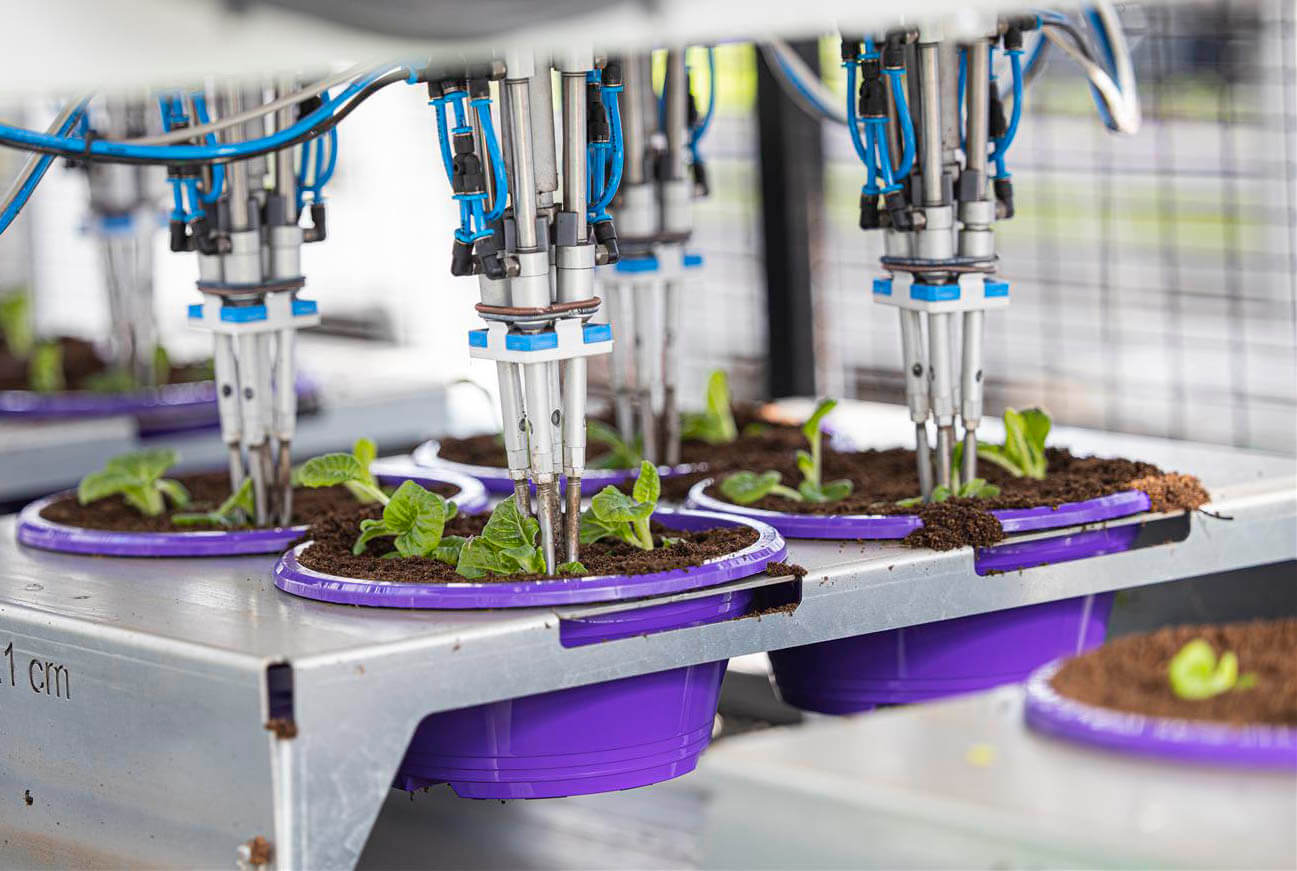 The Pic-O-Mat GR-2700 transplanter has impressive speed, flexibility, and ease of use. 24 independent servo-controlled grippers move up to 45,000 plants per hour with high speed and accuracy. The Pic-O-Mat GR-2700 is designed for growers with a wide range of transplant programs.