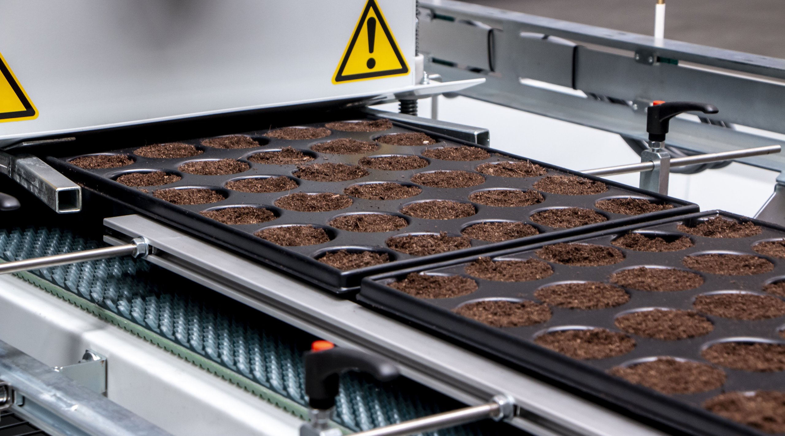 The Space-O-Mat system is an efficient solution for transporting pots and trays, and the spacing of pots to reduce labor in the greenhouse. The Space-O-Mat system has become a common concept and has proven itself internationally over the years. Automate your handling process with the Vitoy Forklift and transport and spacing forks.