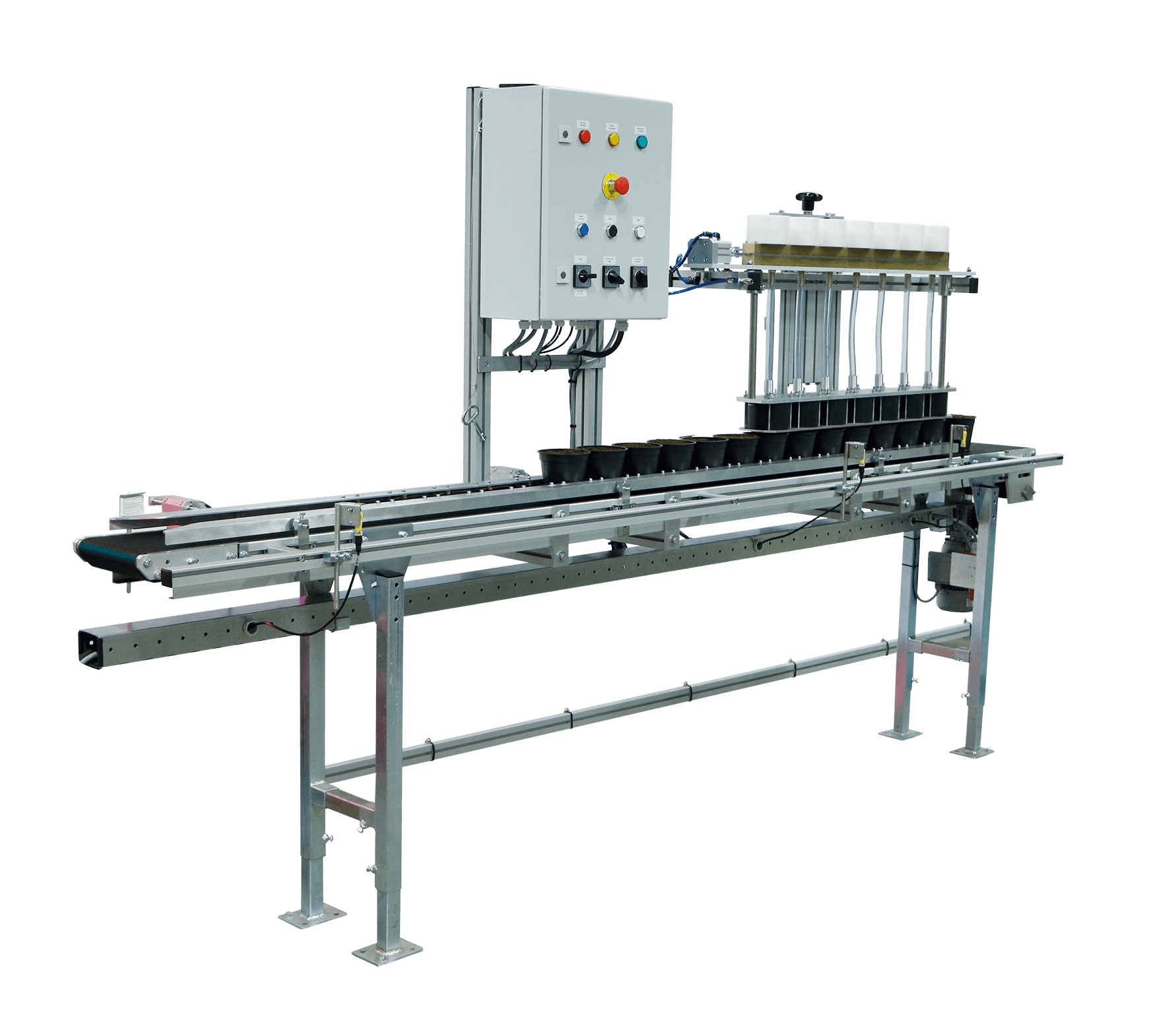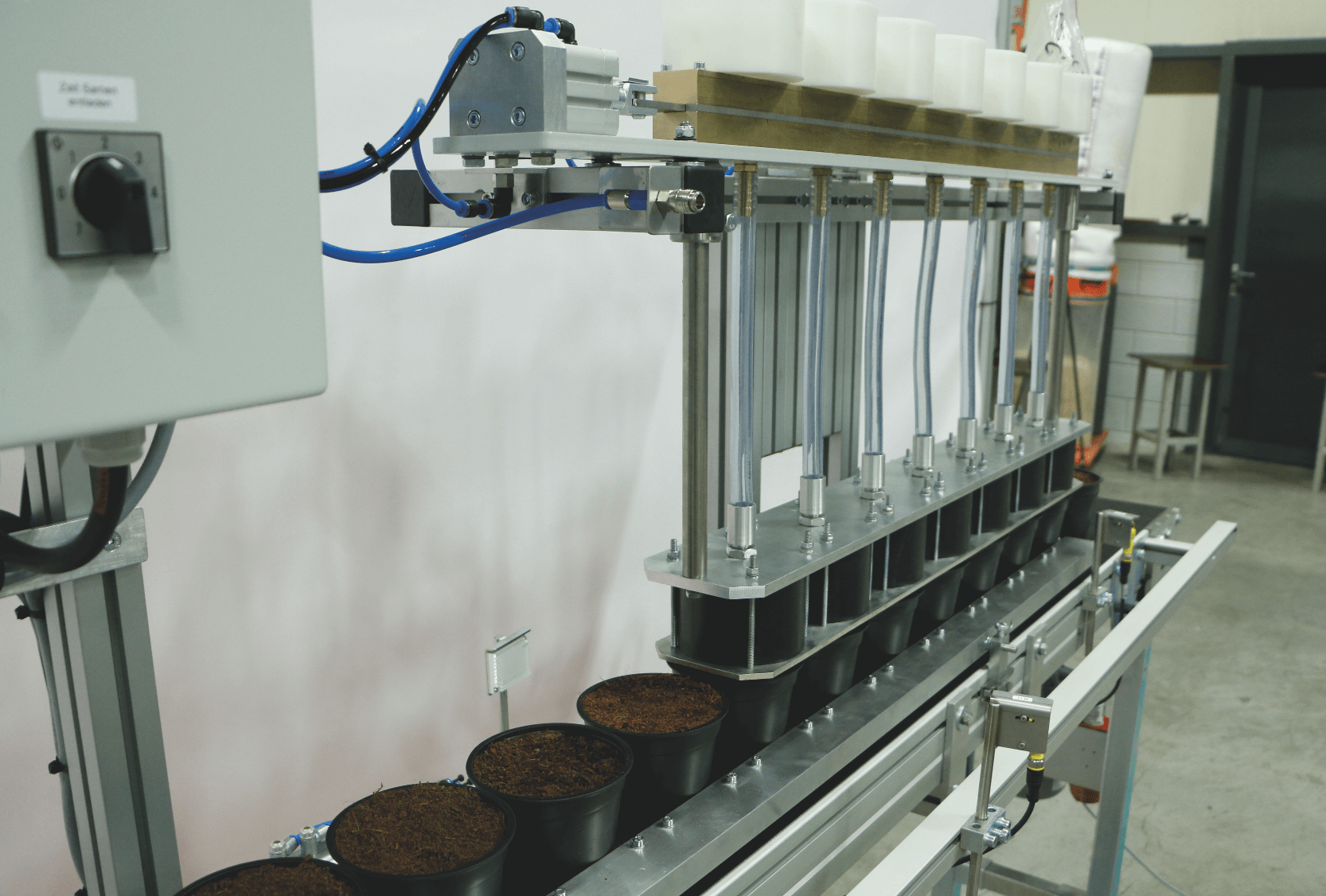 The Auto Seeder Granudine is perfect for seeding large amounts of naked seeds equally in pots or trays. The Auto seeder Granudine is distinguished by its high capacity and ability to sow different kinds of seed species, such as different kinds of annuals and herbs.