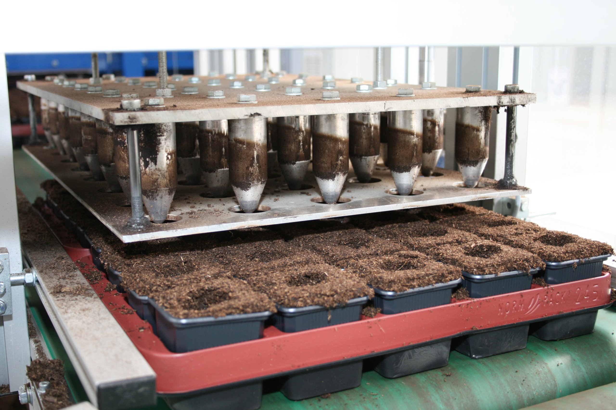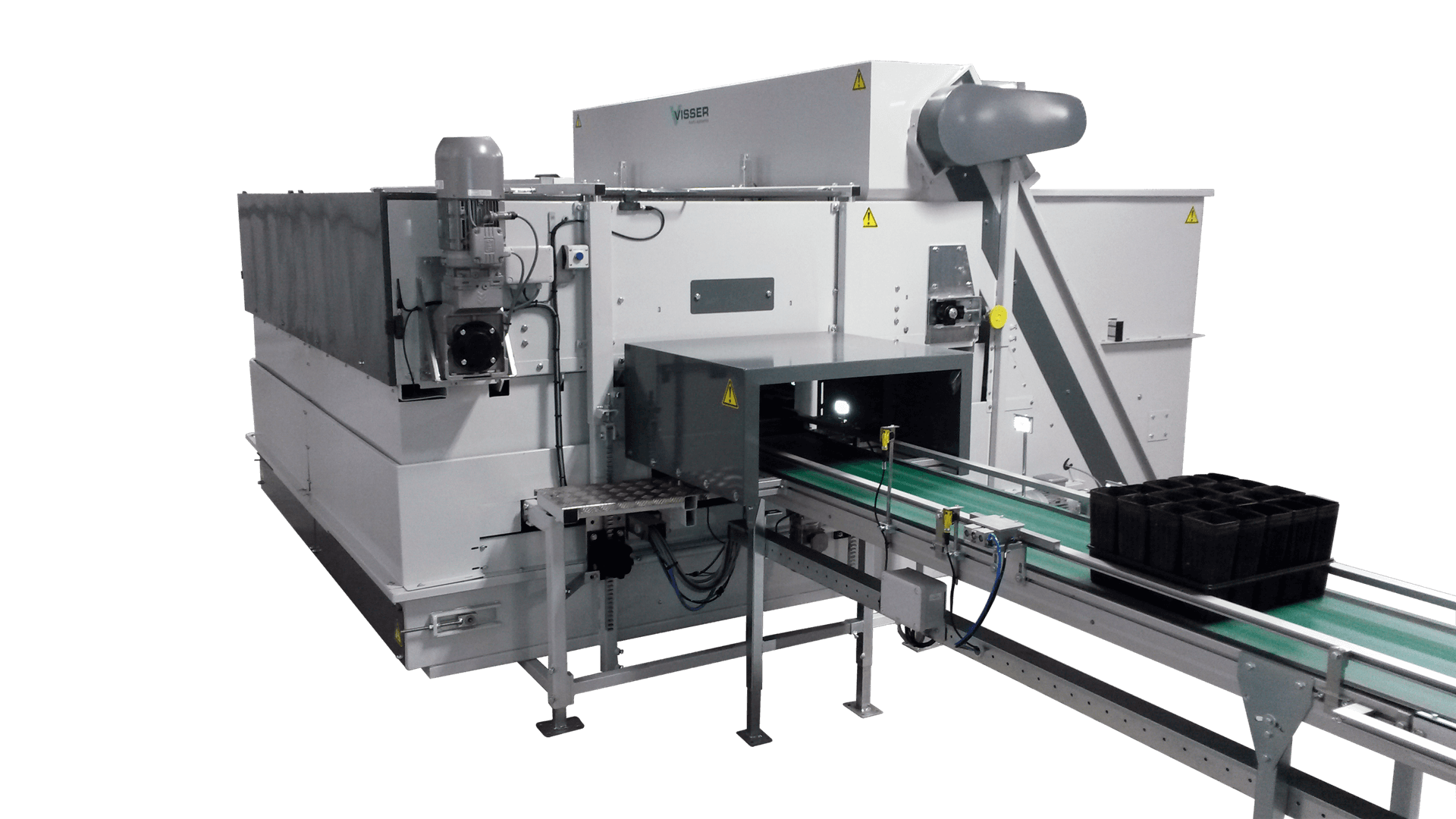 The FF Filler is a high-speed template-based filling machine that achieves a nice and clean filling result. No soil is spilled using a template that matches the pot/tray combination. The FF Filler is fully adjustable in template size, speed, and filling density.