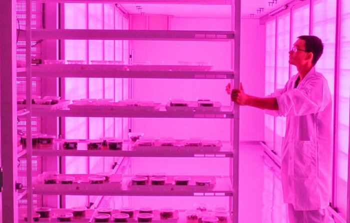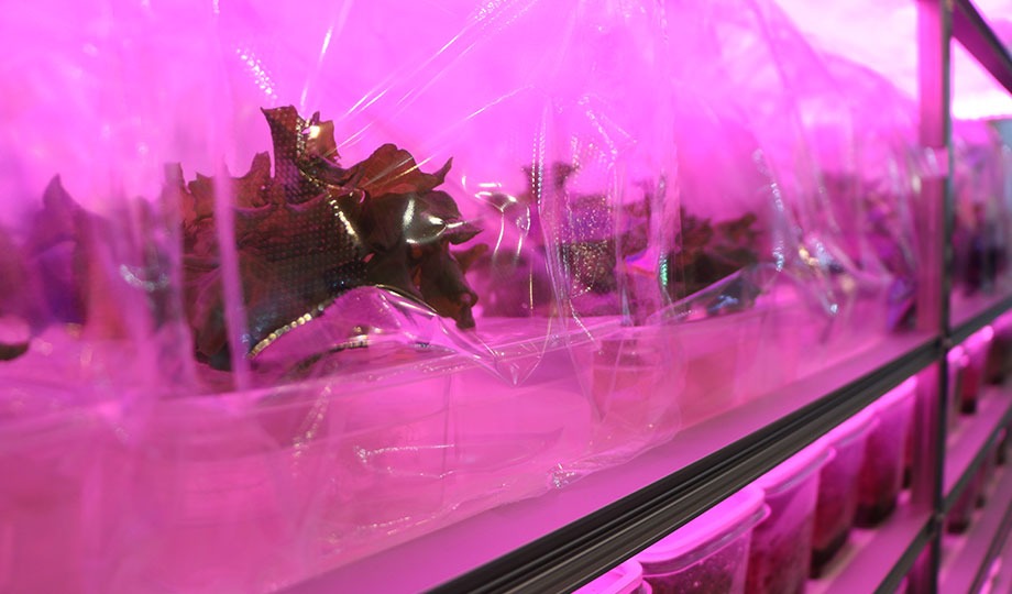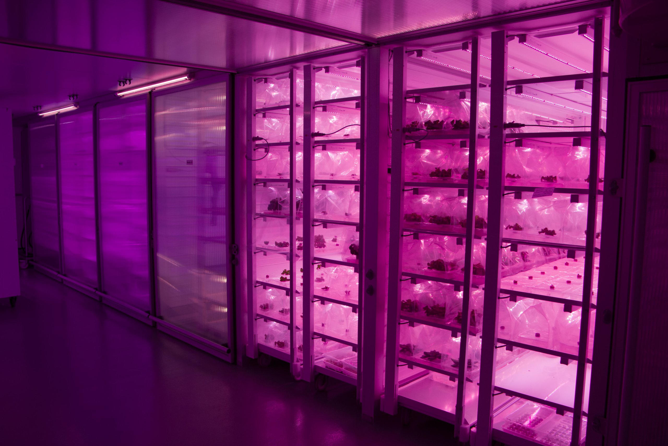 The ViVi plants are grown in the highly specialized ViCabin: a controlled environment of vertical cultivation with LED light. Multi layer cultivation with LED light panels makes it possible to save costs on the number of plants per square meter. The plants can be cultivated in vertical layers, which have less than one foot distance between each other.