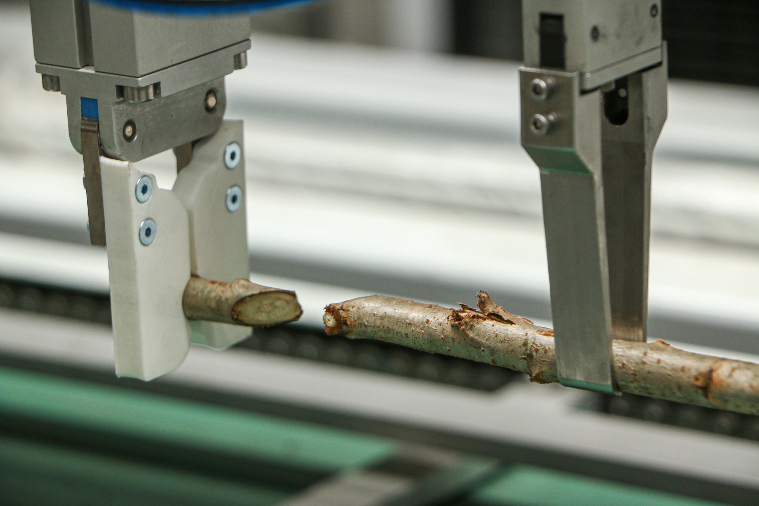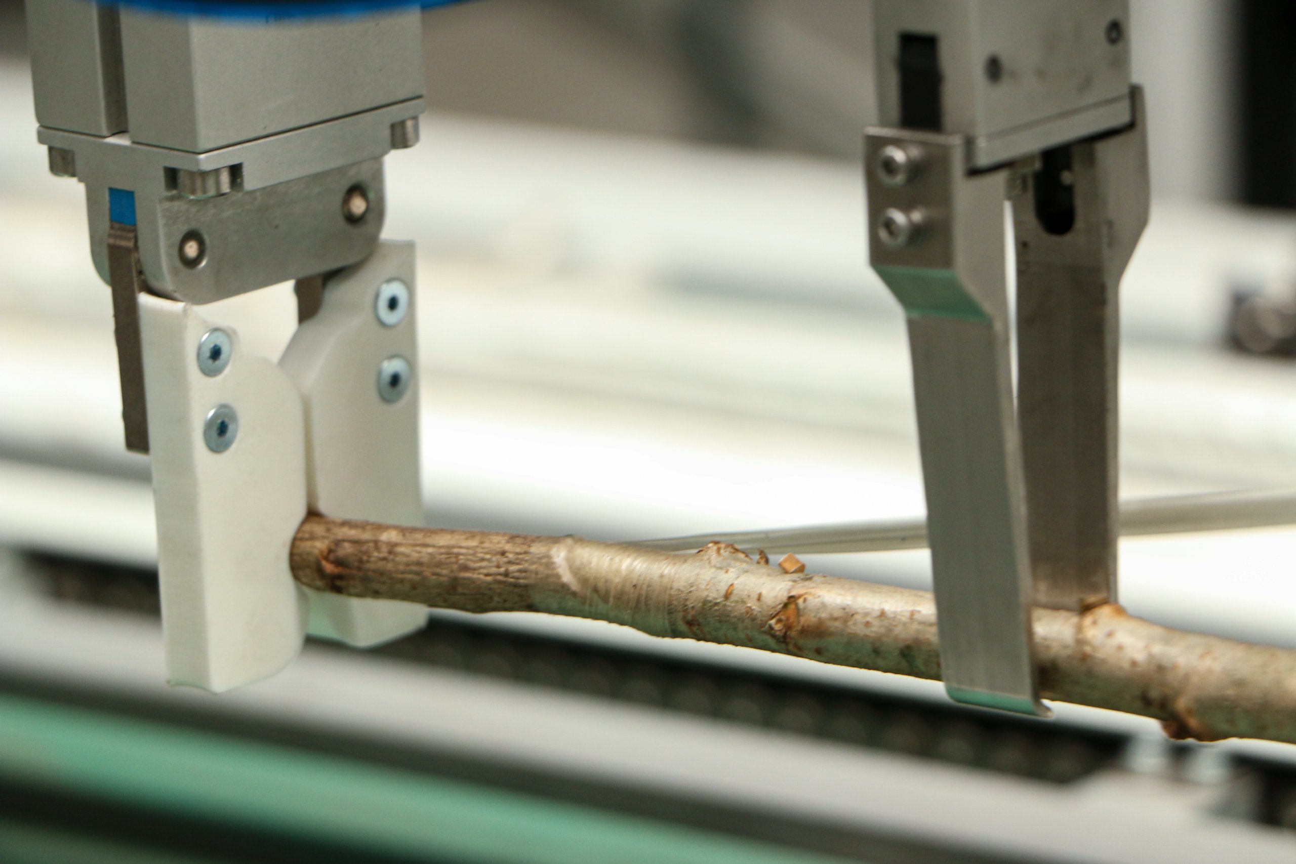 The key characteristics in this process are to build an automated and robust grafting machine. When needed, the machine can have interchangeable blade and positioning setups, in order to accommodate different grafting techniques. The grafting process contains of three steps;