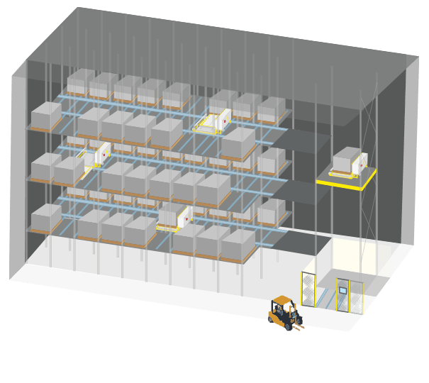 The ‘Matrix’ system spreads through several areas separated by walls, creating different climate control areas. Shuttles are able to move between these different zones order to provide flexibility during seasonal fluctuations and product call.